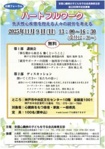 医療の進歩により、先天性心疾患の子どもたちの多くが成人期を迎えられるようになりましたが、生活をしていく上で何かしら困難を抱えている方も少なくありません。この記念の年に、みんなで一緒に就労について考えてみませんか?
