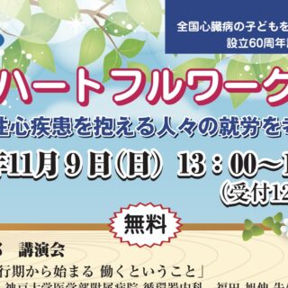 兵庫県支部は1965年3月に設立し、今年60周年を迎えました。医療の進歩により、先天性心疾患の子どもたちの多くが成人期を迎えられる...